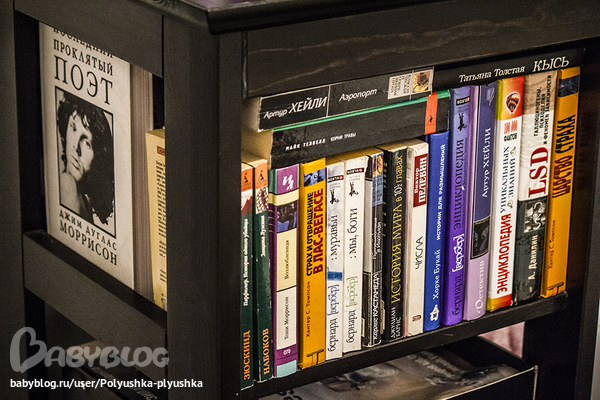 На книжном шкафу - банки с заколками-резинками и самая ценная машинка (папа тоже играет иногда).