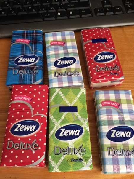 Приобрела тут платочки Zewa Delux Family. После нескольких дней использования, в целом осталась ими довольна. Вытирала носики своим деткам(у меня их три), т. к. сейчас осень и именно платочки очень актуальны. На ощупь мягкие и прочные, также привлек дизайн их. В упаковочке 6 отдельных пачек, нам как раз на семью. Из недостатков_быстро заканчиваются)))