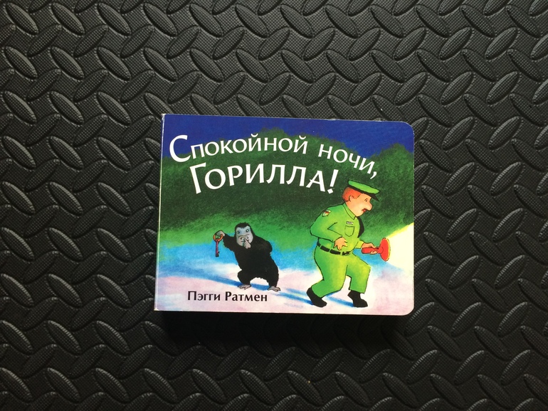 Офигительная книжка практически без текста. По картинкам можно без труда рассказать всю историю в той степени подробности, на которую у вас хватит времени и сил. История про зоопарк: охранник обходил клетки с животными и всем говорил "спокойной ночи", а горилла утащила у него ключи, шла за охранником и выпускала зверей. Потом весь этот зверинец пришел за охранником к нему домой))