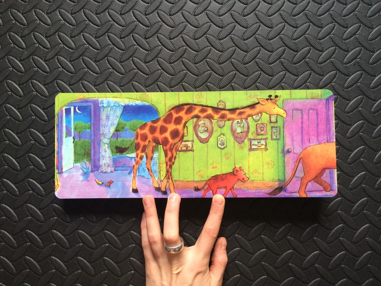 Радуют подробности: например, в клетке каждого животного лежит такое же игрушечное животное, а шарик, который улетел в начале истории, виднеется в небе до ее конца, становясь все меньше и меньше. Рисунки очень красивые.