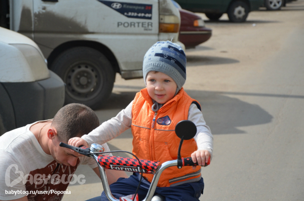 СынокЗамечательные выходные выдались! И погода и настроение! И конечно в воскресную прогулку мы решили обновить Тимуркин велосипед. Его мы с мужем подарили сыну на день рождение на 3 годика. Он всю зиму простоял на балконе. А сегодня велик колесил по Видному под управлением Тиы! )))