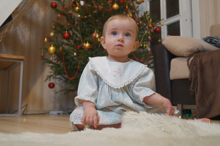 А 31 мы готовили, убирали...ночью встретили новый год (Надюшка спала), поцокались бокала и с соком, похлопал и в ладоши и пообнимались) Дима сходил с ними на улицу смотреть салюты, а потом спать. Мы ещё чуточку посидели (с тазиком оливье и томатным соком - наша классика жанра на нг) и спать.
