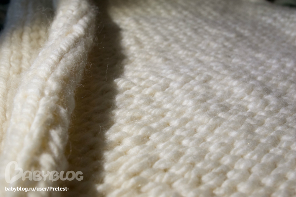 Вот, наконец сфотографировала своё творение!))) Вязала я последний раз ещё на уроках труда в школе - и было это отнюдь не 2 года назд...:)))))) Так что процесс вязания длился у меня 3 дня. Это простенький пледик молочного цвета приблизительно метр на метр. Делала так, в коляску накрывать или просто, пока лежит, спит)) Думаю, такая вещь найдёт приминение)))