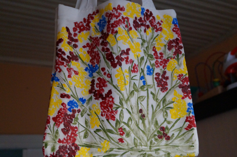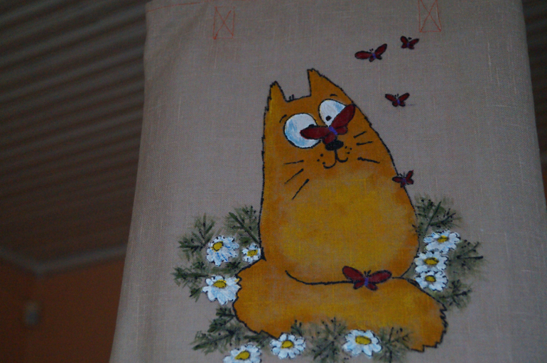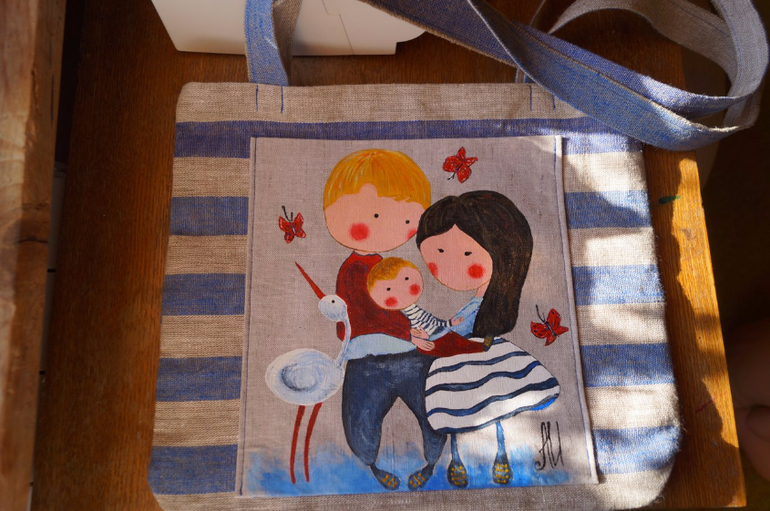 И тут, не долго думая, сообразила вот такую сумочку)))) А потом подумала-подумала, купила акрил по ткани и пустилась во все тяжкие))))
