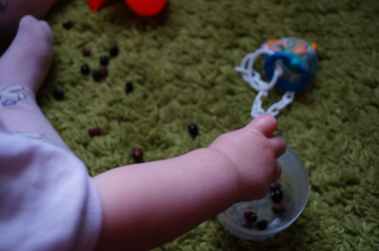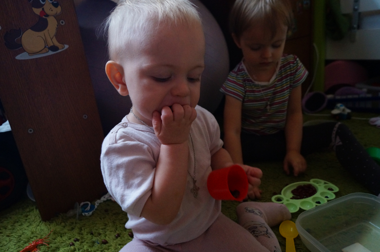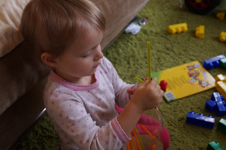 Ах, да, И Поле, и Роме Очень нравится вставлять трубочки в бутылку. А у Ромы потом обязательное действие - закрутить крышку.