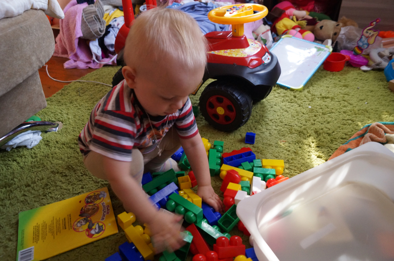 Рома страсть как любит выворачивать этот конструктор из коробки! Правда, последнее время, любит примостить попу и что-то собрать.