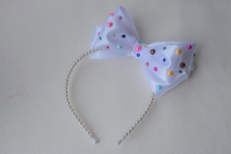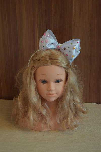 38) Ободок с большим бантом, украшенный разноцветными полубусинами.