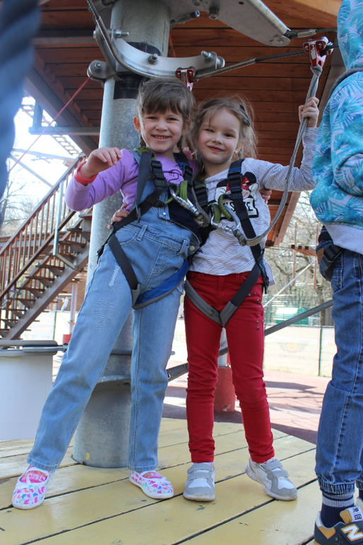 Мальчик, который должен был пойти с Соней, поднялся наверх, посмотрел вниз и не пошёл, испугался, бывает. А Сонечкой я очень горжусь. Видно, что ей было страшно, но она смело шла вперёд. И там маршрут как бы разделён на 2 части, можно уйти с половины. Соня решила идти до конца! Она была самой маленькой на маршруте. Инструктор очень удивилась, когда узнала, что она ещё в садик ходит.