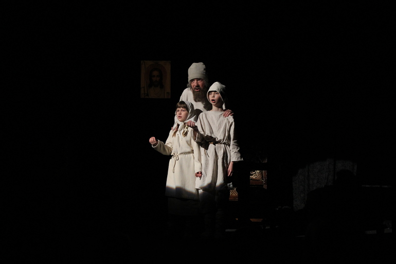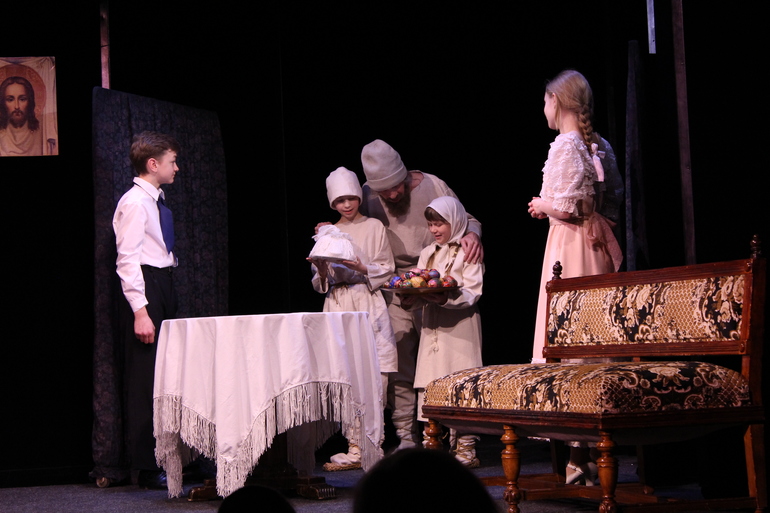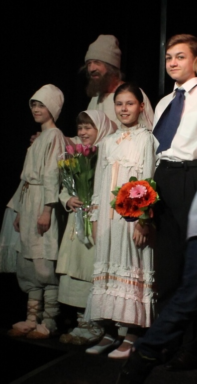 Сонин второй спектакль в Театре русской драмы п.р. Щепенко, небольшая, но важная роль. Спектакль прекрасный, посмотрела два раза подряд на одном дыхании. Единственное, для тех, кто категорически против религии, он противопоказан. Показана жизнь дворянской семьи 19 века, поэтому тема Бога - неотъемлемая часть спектакля. Но поднимаются и другие темы, очень важные - дружба и предательство, честность и трусость, дружелюбие, прощение, принятие другого и т.п. Очень много тем для обсуждения с детьми. Играют дети великолепно. На обоих спектаклях был аншлаг, и актёров трижды вызывали на поклон, а это о многом говорит.