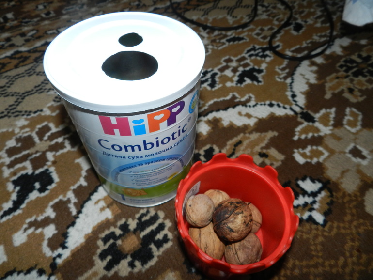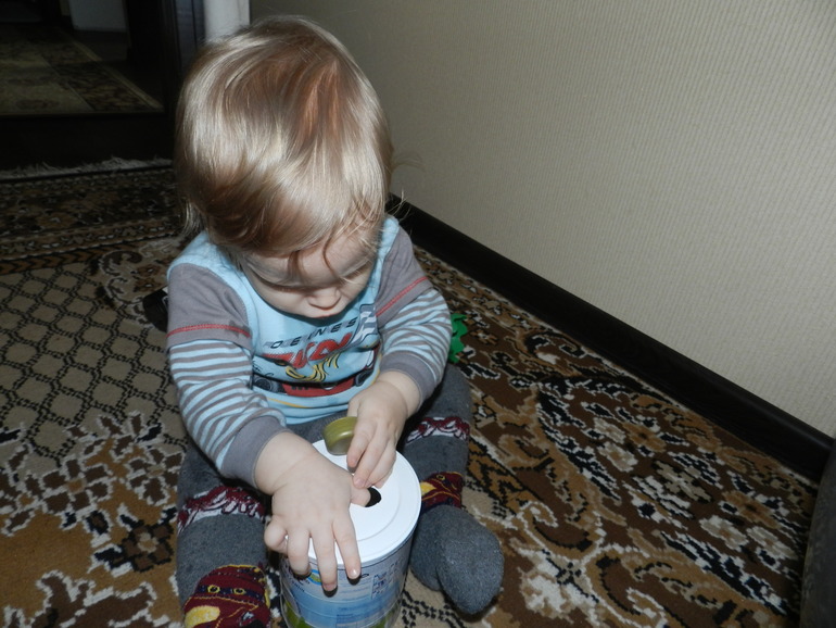 не замечен в стремлении затолкать в рот целиком. Он уже давно играет орешками, крышечками и проч.
