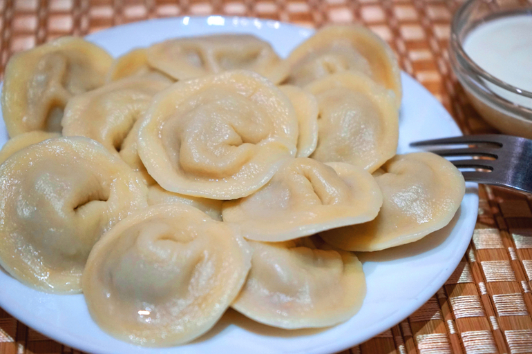 Душа наша - пельмени! Объедение! Увидишь в кастрюльке кипящие пельмешки, душа радуется. :)) К ним возможна и водочка студеная! И вот оно счастье! А уж пельменное тесто позволяет дать волю фантазии и с начинками, учитывающими различные возможности и вкусы. Прикиньте: капустка - хороша, картошечка - возможна, творожок уместен, рыбка и т.д. Конечно это не классические пельмени, но пельменное тесто позволяет все это разнообразие начинок. Пельмени с успехом идут со сметаной, со сливочным маслом и горчицей, хреном и с перцем, уксусом, кетчупом и т.д. Что кому нравится! :))