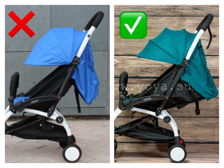 Сложно не заметить разницу между колясками на картинке справа и слева (справа коляска YOYA с нашим текстилем):