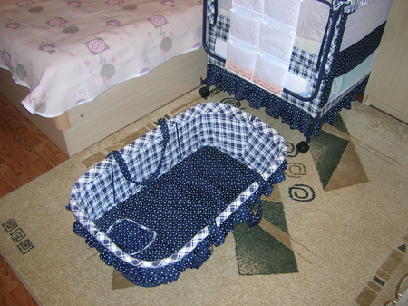 А это в комплекте была колыбелька с матрасиком и подушечкой, она на борта кроватки подвешивается и качается. Еще есть пеленальный столик и балдахин, но я думаю ими пользоваться не буду.Вместо столика будет мой комод.