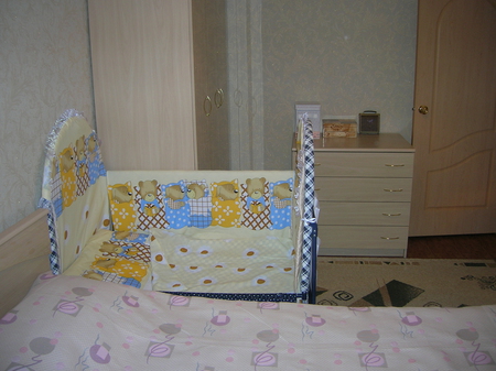 Наконец-то связала. Осталось постирать и пришить пуговички.Наконец-то сшила бортики для кроватки, сегодня докупили ортопедический матрац.