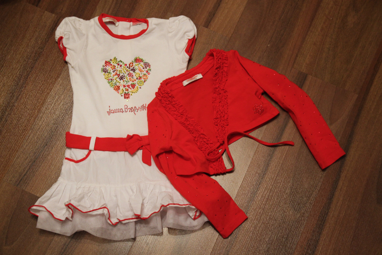 2. Платье и болеро Лаура Биаджотти, 3 года, немного маломерит, состояние ок, не хватает пару страз на надписи Лаура Биаджотти, болеро в идеале, 2500р