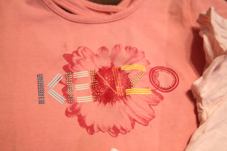 24. Набор футболок De Pareil Au meme + одна Кензо бонусом. На 3года (до 100см), тишотка новая без бирок, красная и розовая футболка, состояние ок, на футболке с медузой пятно (выводить не пробовала, см крупное фото), на кензо не хватает стразиков и мелкие пятна (выводить не пробовала, см крупное фото). Пакетом - 1000р