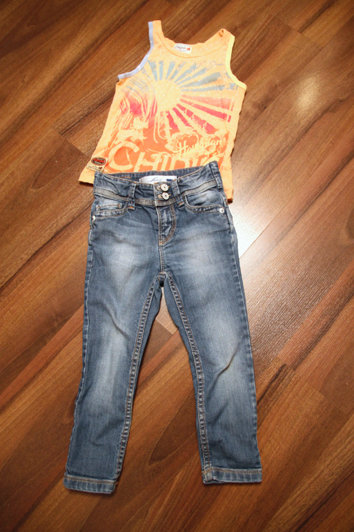 30. Футболка Chipie и джинсы Levi's с утяжкой, очень удачная модель, прямые, зауженные книзу, искала похожие - не нашла, на 3 года, состояние ок. Джинсы 1500, футболка в подарок