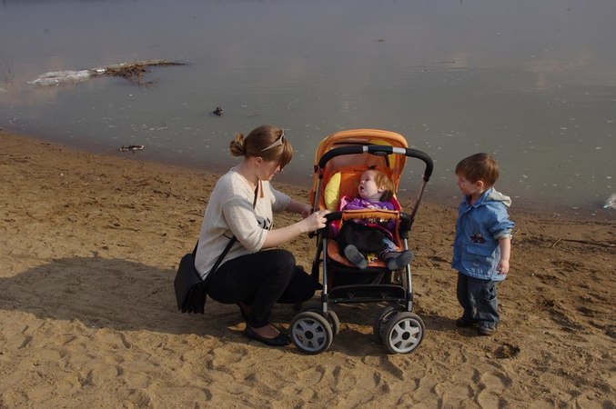 В последние дни мы стараемся много гулять, уже три раза ездили в парк. Вчера вытащили с собой за компанию подругу-соседку Аню с её детками погодками и поехали целым табором :)