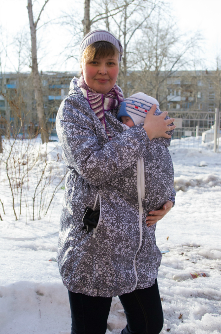 После долгих раздумий у меня таки появилась слингокуртка (I love mum "Вуаля", цвет Кружева). Вчера и позавчера мы в ней гуляли, даже в транспорте покатались немного. Смотрите, какие зайчики!