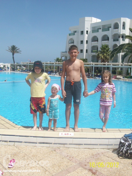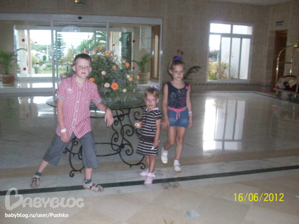 Вот мы и вернулись из отпуска. Отдыхали в Тунисе в отеле El Mouradi Mahdia 5*. В глобальном смысле отдых очень удался. Компания была чудесная. Я, мама и Олеся и 3 подружки с детьми. Каждый день, точнее ночь, я ходила на дискотеки. Спасибо маме. Вообщем отдохнули в полном смысле слова. Ну и фотки: