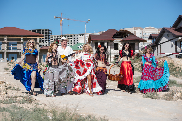Начну с того, что я решила шить себе наряд самостоятельно. На это у меня было 5 дней, поэтому начала я в пятницу часов в 9 вечера. До 4 утра я шила эту юбку. Легла спать с чувством выполненного долга. В 7 утра меня разбуила Хельга, что в мои планы не входило, конечно. Померила юбку и чуть не умерла... Юбка была шире меня сантиметров на 30 и выше меня на целый километр. Мне пришлось все распороть, поотрезать, заново наметать, сшить и к 4 вечера юбка была готова. жилетку сшила ровно за 4 минуты. фууух. В 6 вечера мы всей гурьбой собрались в назначенном месте и веселье началось. Смех, песни , танцы, гора любопытных и фотографирующих нас людей.