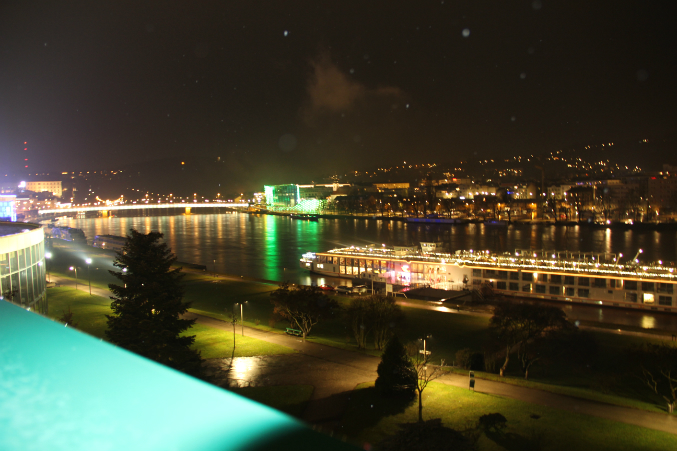 Поднялись в забронированный заранее номер в отеле Arcotel Nike. О! ДА! Вид с 4, кажется, этажа на ночной Дунай. Неописуемая красота. Мы, уставшие, с моими вечно больными суставами, стояли у окна не менее получаса и рассматривали огромное количество огней и огонечков. Говорили о счастье путешествовать, о будущем, о понимании и о вере.