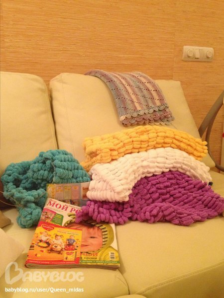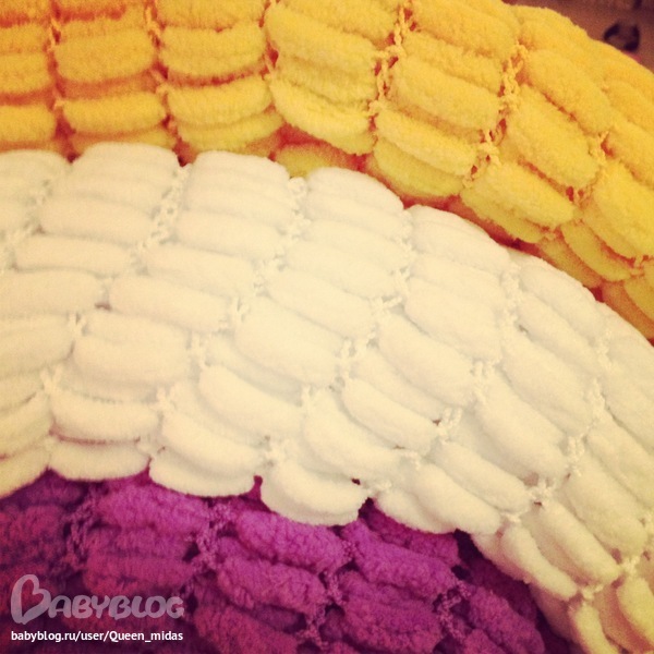 Спасибо! Смотрела на эту пряжу, решила купить в следующий раз. Пледик белый для Даши связала (пока беременная была) из подобной пряжи, только без шишичек нить идет, вся пушистая.