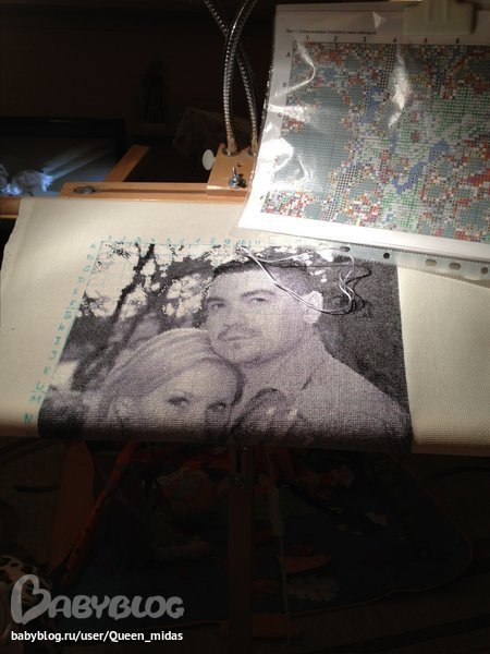 Конечно есть - в гостиной на самое видное место :) а потом, когда переедем (эх, мечты, мечты!) я этот портрет над камином повешу!))))) кстати, основную часть я как раз перед родами отшила - месяц работала! Но все равно, немного не успела (( а сейчас хочу новые три набора заказать, руки так и чешутся на них! Но я себе еще полгода назад слово дала - никаких новых проектов, пока старые висят....вот и гоню теперь!