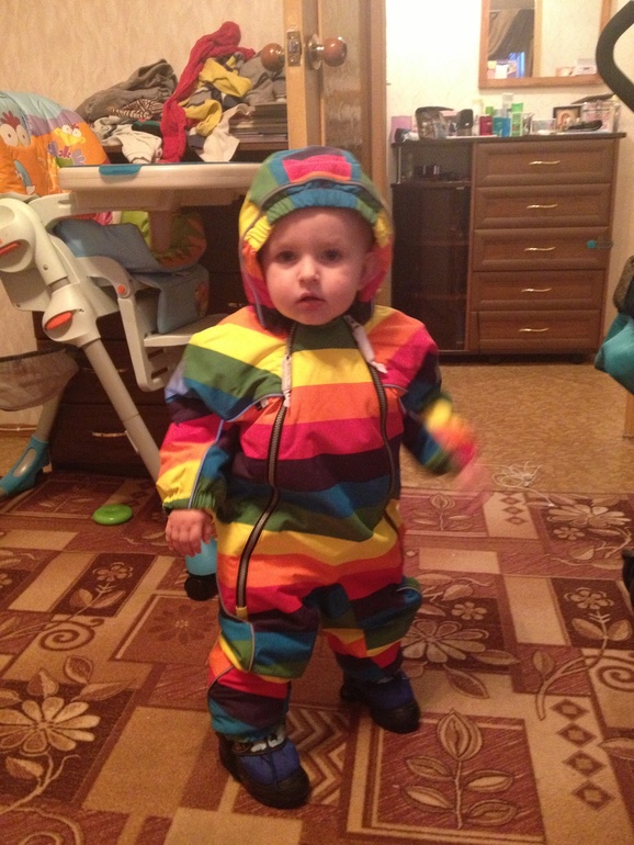 Попробуй! На сапожки или ботинки нормально будет, там же штрипки и резинка на штанинах! Да и на рукавах резинка, в крайнем случае рукава можно немного подвернуть! А мы пока просто в пуховичке ходим мазекея, а на ноги колготки и джинсы!
