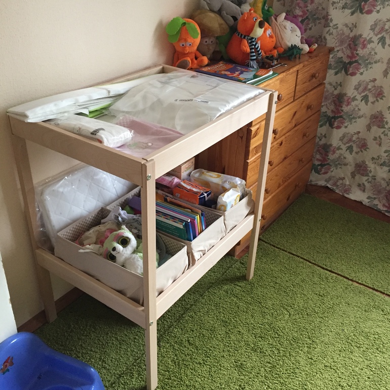 На даче начала собирать мебель для малышки)) ну не сидится мне спокойно! Девчат, весьма довольна своим бюджетным выбором в этот раз. Показываю наш пеленальник (вернётся на это же место, жду мужа, чтобы перенес обратно к двери) и кроватку