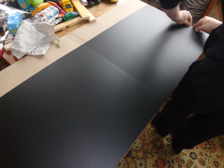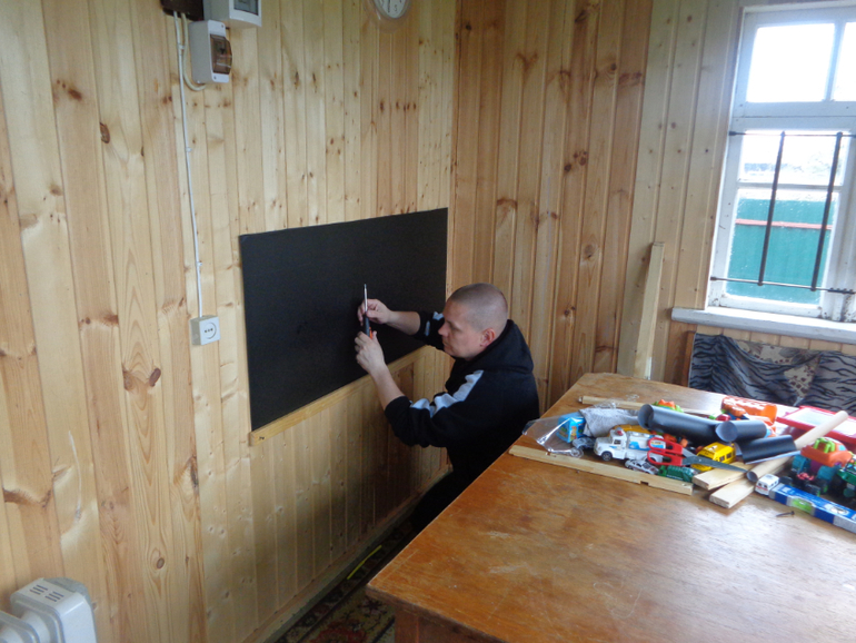 Отмеряем и наклеиваем на чистую поверхность наши меловые обойки