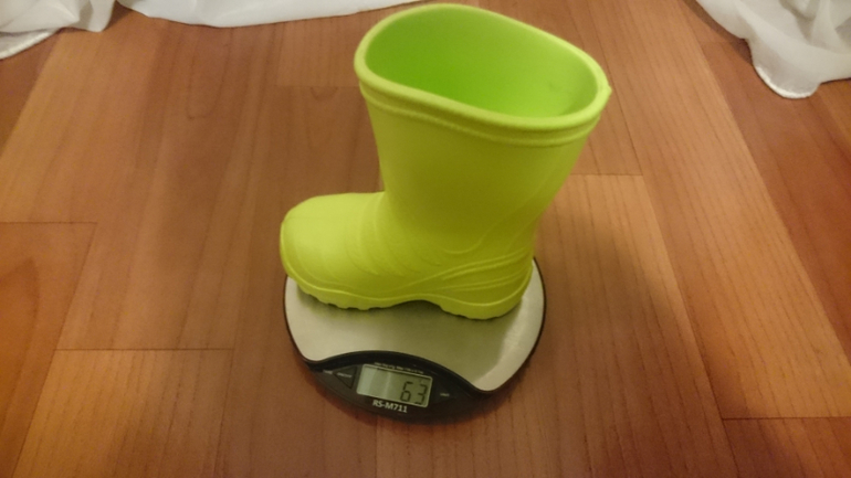 Итак, наш первый подопытный - Встречайте! Сапог малюсенького размера - прошу учесть, что без утепления и всего такого! 269грамм! Т.е. пара сапожек, для ребеночка весит полкило. Поехали дальше...