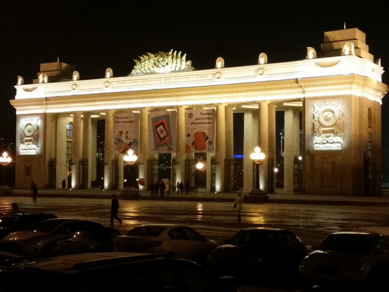 Сначала в планах был только Парк Горького. Там сейчас немного уныло, вечером, конечно, веселее с подсветкой.
