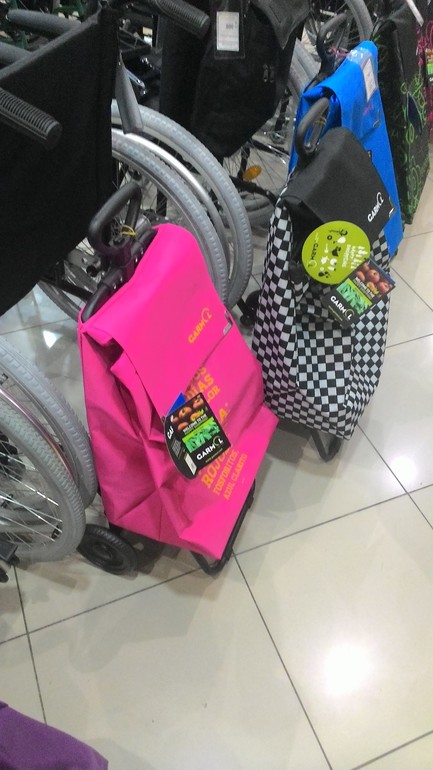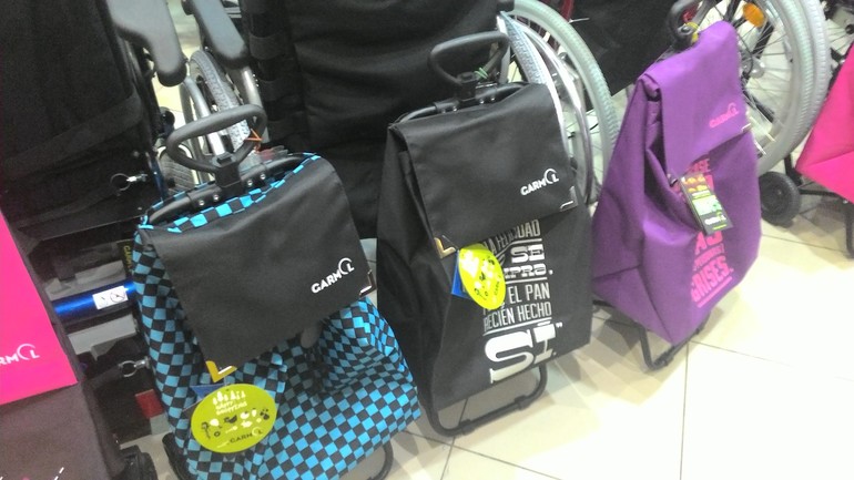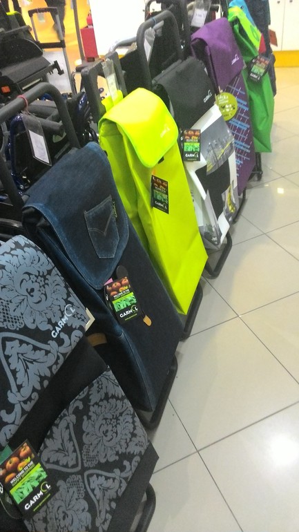 Собственно на это чудесный праздник я получила свою тележечку))) Она вообще не бабушная, девочки!) Я проверила. Значит есть испанская фирма Rolser там тележки от 4 тыр начинаются. Они , конечно, красивые, но.. я выбрала фирму тоже испанскую Garmol. Наверное, самым главным стало то, что Эти тележки можно посмотреть в магазине - я наткнулась на мед-магазин и вспомнила, что он есть в ТЦ рядом. Пришла, посмотрела, подергала. Выбрала то, за чем и шла))