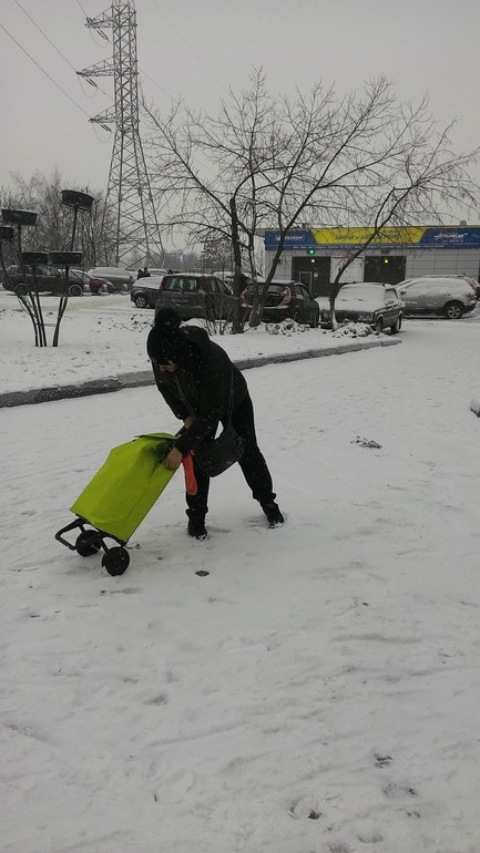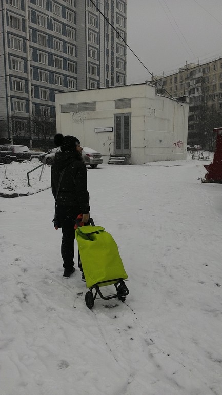 Крутая тележка) а моя сестра тоже ходит с телегой) ей от бабушки досталось обычная черна,вот они с мужем по магазинам с ней)