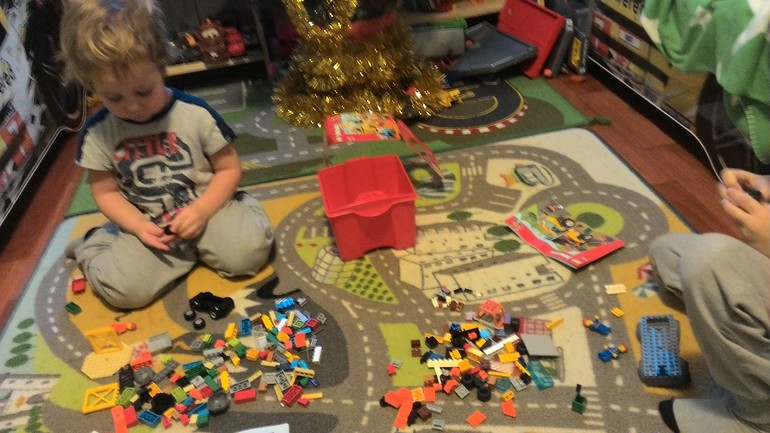 А сегодня мы в обед побежали домой, ибо МЧС не дремлет) с подарочками, конечно) теперь мы играем в лего джуниор 4-7, я даже не знала, что такой бывает. Мелкий собирает если подавать детальки и пальцем тыкать, старший собирает сам по инструкции. Детальки довольно мелкие.