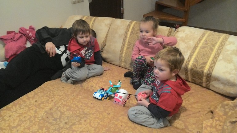 тихонько проснулись, не поняли где они, но на всякий случай почистили зубы и пошли изучать игровую))