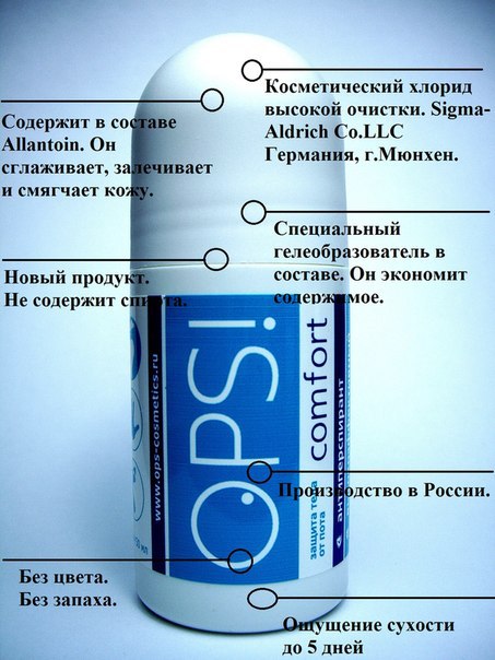 даже если пропадал запах пота, оставалась одна, очень не приятная вещь - мокрые подмышки. Побегай в жару за детьми час - и майка в стирку. Ops не перекрывает поры, а реально сужает их. Хотя в рекламе всяких средств говорят о том, же, ТАКОГО реального эффекта я не видела. Проверено в огороде, вспотело все, кроме подмышек ;) он не имеет запаха. Поэтому остается набрызгаться чем угодно и в путь. У меня ops! Продается в двух вариантах. Шариковый антиперспирант 50 мл - 450 руб, спрей 75 мл - 500 руб - спрей удобно наносить на другие части тела, если есть такая необходимость, ведь он действует не только подмышками, ну или пользоваться всем семейством. Наносить 1 раз в 3-5 дней, вам его хватит минимум на полгода (на мой взгляд), производителем заявлен аж год ;)