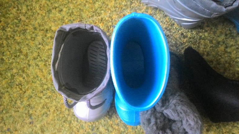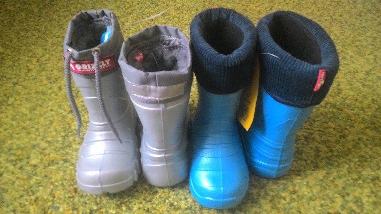 Термикс - ножка входит в собранный сапожок и побежали. Гризли - сначала утеплитель, затем сам сапог.