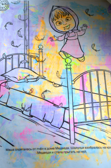 В начале на распечатанную картинку предложила намазывать пластилин согласно рисунку. Но усидчивости не хватило и потом стали мазать как душа захочет. Покрыли слоем приличным лист и оставили на неделю или даже на 2. Пластилин въелся в картинку и после того как мы его аккуратно шпателем сняли у нас получилась необычная картинка. Фото есть только результата