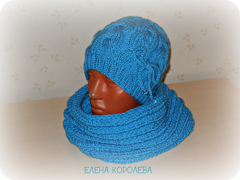 Комплект получился очень уютным, мягким из Nako Бамбино (50 г/130 м) в две нити, спицы 3,5. Расход на шапочку около двух мотков, на снуд почти три мотка. Шапочка на ОГ 56-57 см, снуд в ширину 30 см в длину 70, связан граненой резинкой, получился объемным.