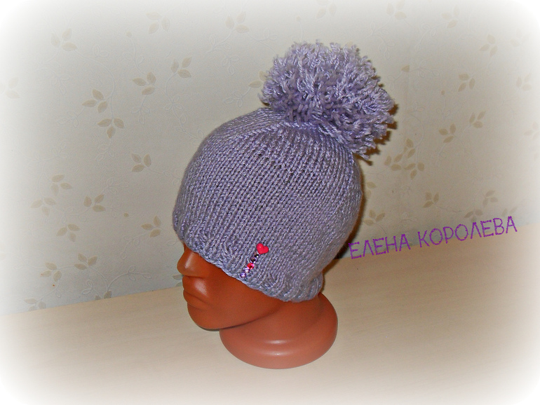 Связана из Ализе Ланаголд спицами 3,5. Подклад из тонкого х/б трикотажа. Помпон - песец.