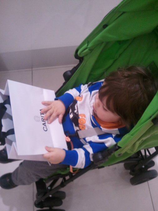 В отделе Диор консы, просто тащились от Руслана, ему всю коляску повязали ленточками диор с побрякушками)))) Зашли еще за шмотками, сам выбирал.
