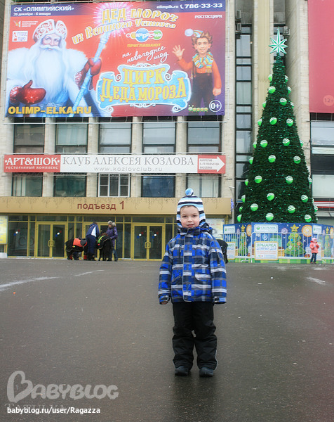 За это время мы успели посетить две елки: одна в Крокусе, где Тема с папой смотрели "Машу и Медведь", а на вторую мы с ним поехали в Олимпийский "Цирк Деда Мороза и Бириляки". От папы было трудно добиться отзывов, ему не понравилось, а ребенок вроде ничего воспринял. Правда ни на одной из елок не захотел участвовать в предварительных "хороводах". В Олимпийском очень красиво.
