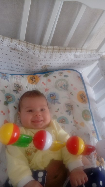 ПаульПауль потихоньку осваивает руки :) Начал цеплять и дергать погремушку-растяжку в кроватке. Делает это совсем не так, как Настя в его возрасте.