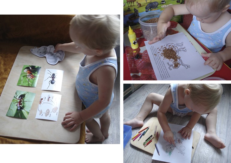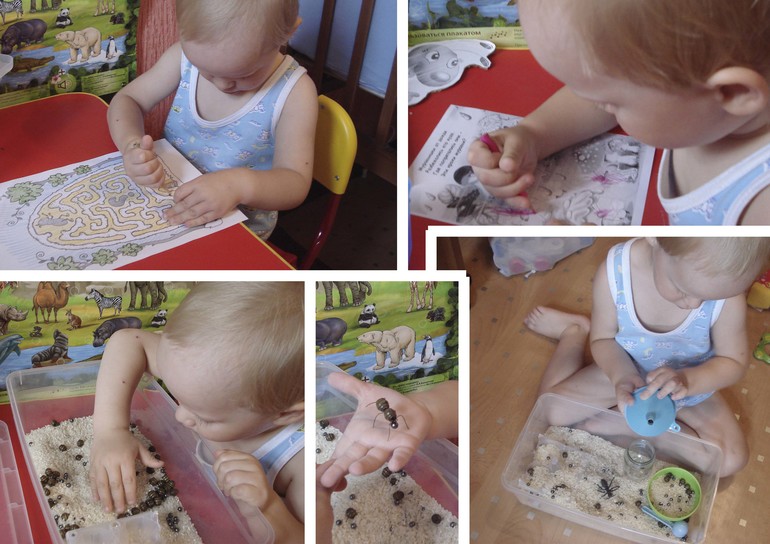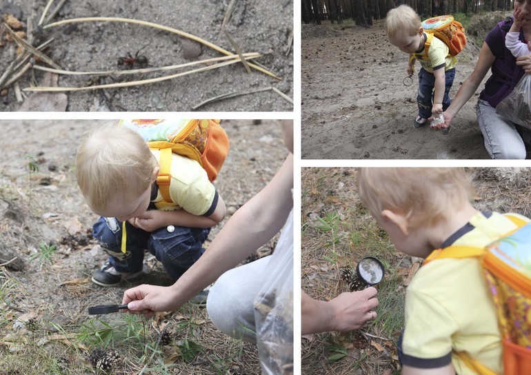 Скажу честно, как-то у нас не очень задалось это задание. Почему-то у ребенка не проявилось особого интереса к букашкам, или уже сошел на нет к середине лета... Прогулка в лес так вообще была еще тем испытанием))) Ребенок бегал со словами "Жуки!" (что его кусают комары) или "Папа где? Мама где? Би-би где?" (терял всех, чем нас жутко притомил...)