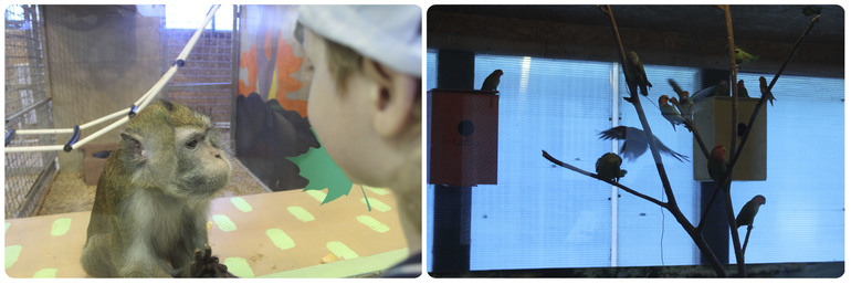 Мы ездили в жаркий выходной. Зоопарк находится под открытым небом. Часть животных находятся в двух помещениях: в одном рептилии, в другом птицы и обезьянки.