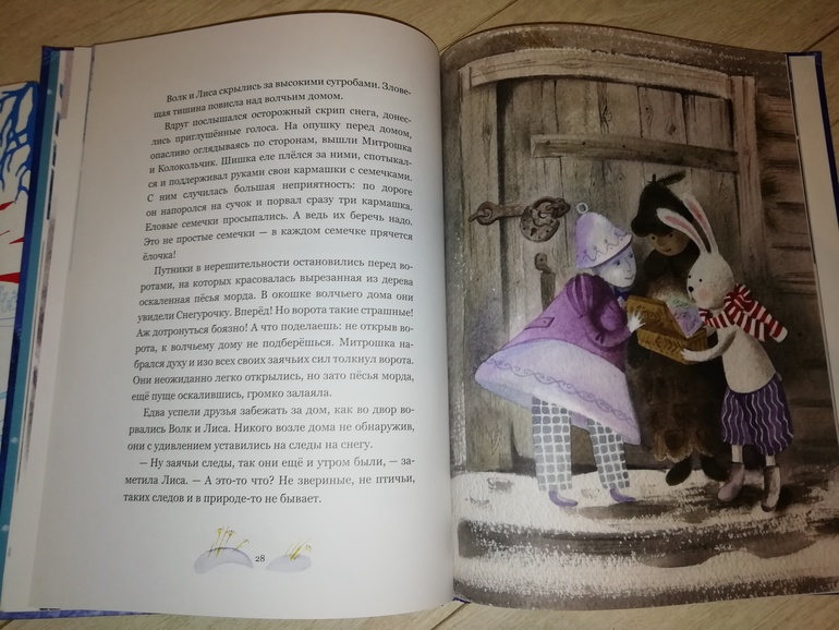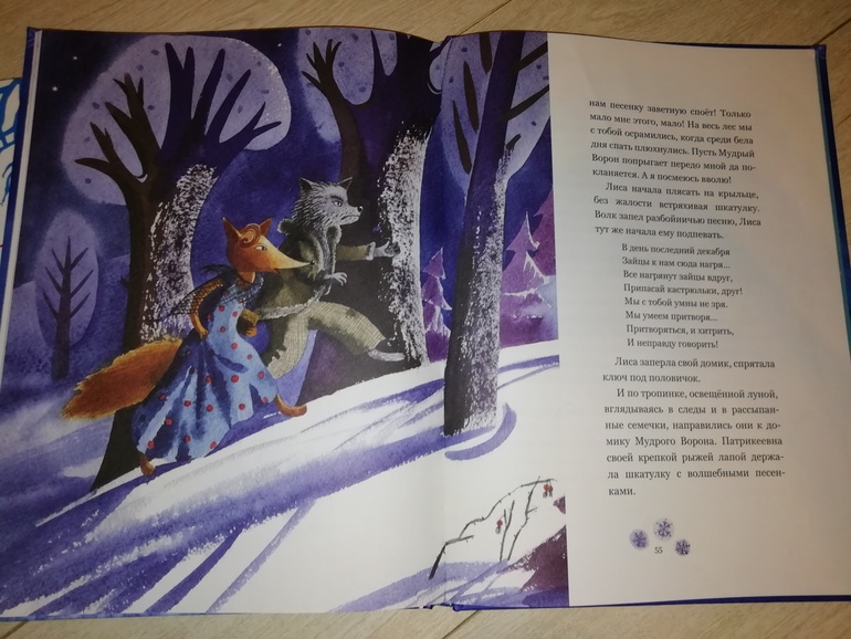 Подарок для снегурочки-еще одна книга в нашей библиотеке, купленная давно и читаемая каждый год. Мне очень нравится текст! Он очень легко читается, сама история интересная: каждый новый год в лес приходит снегурочка, чтобы встретить праздник со зверями, но в этом году хитрая лиса и волк похитили снегурочку, а зайчик, шишка и колокольчик отправились ее спасать. Сказка очень волшебная и атмосферная, иллюстрации замечательные! Книга очень нравится и мне, и детям.