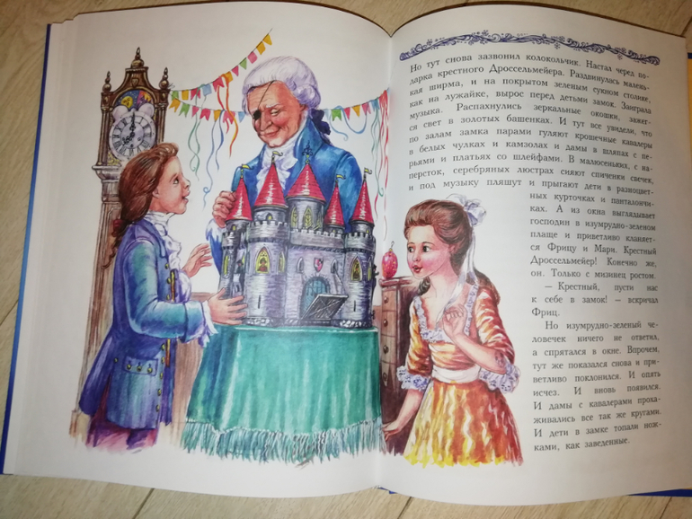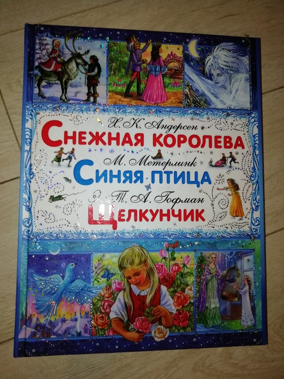 Книга с волшебными сказками- Снежная королева, Щелкунчик, Синяя птица, купила в прошлом году, но мы читали из нее только Щелкунчика, в этом планирую прочитать всю.Иллюстрации красивые, дочке очень нравятся блестки на обложке.