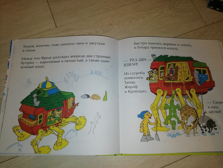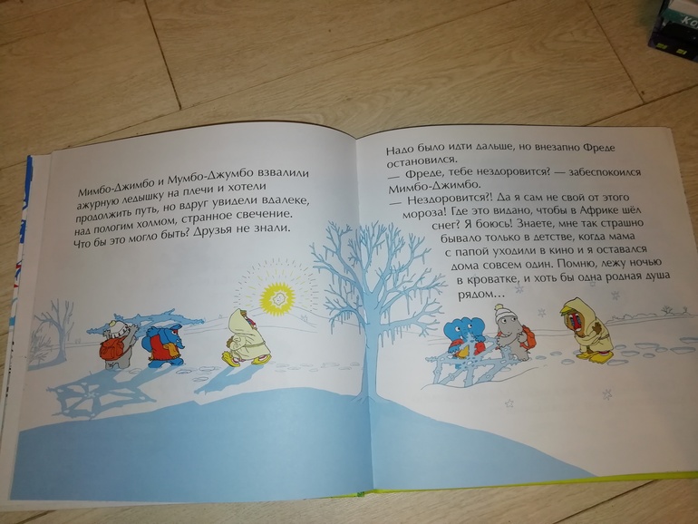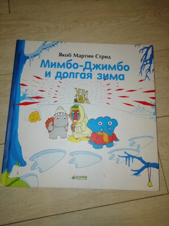 Мимбо-Джимбо и долгая зима. Эта книга у нас в библиотеке уже давно, дочке нравится, читали уже много раз и все рано просит читать еще. Отлично пойдет для самостоятельного чтения чуть попозже (пока многовато текста на развороте для дочки). Иллюстрации лично мне не нравятся, но дочке и сыну нравятся очень. Сама история неплохая: в африке выпал снег и бедные звери начали замерзать, но один смелый слоненок не только спас замерзающих зверей, но и нашел причину такого неожиданного снегопада.